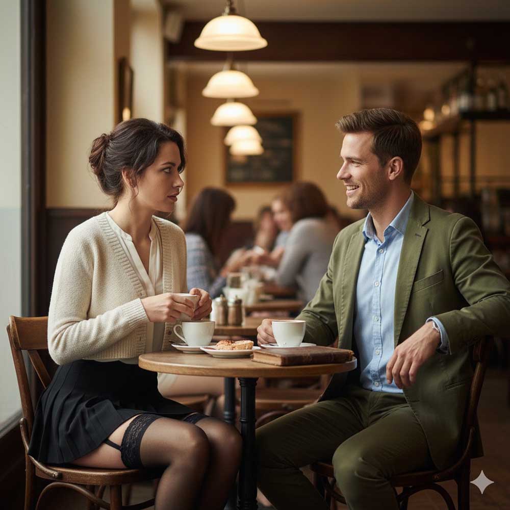 Ich duschte, legte ein Parfüm auf, bei dem ich dachte, dass es dir gefallen würde, machte meine Haare … Dein Wunsch war es, dass ich sie offen trage. Ich betrachtete meine Sachen, die ich anziehen sollte … ein kurzer Rock, ein Jäckchen, das man leicht öffnen kann, halterlose Strümpfe, Unterwäsche … Dein Wunsch nach Unterwäsche hatte mich verwundert, aber ich sagte nichts.