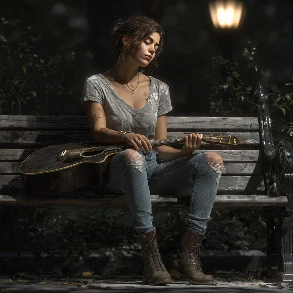 Eine Studentin übt auf einer Parkbank für den Musikunterricht. Doch sie weiß genau, dass ihre unregelmäßige Motivation nicht ausreichen wird. Um ein Instrument spielen zu lernen, braucht es eben etwas ganz Bestimmtes.