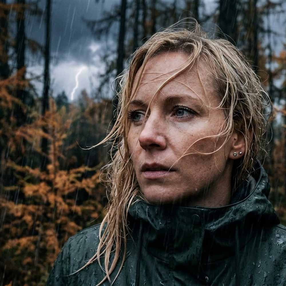 Die kalte Herbstluft schlägt ihr so stürmisch entgegen, dass es ihr fast den Atem raubt. Der herbe Duft der Herbstblätter steigt ihr in die Nase. Ein goldgelber Teppich aus Lärchennadeln liegt unter ihren Füßen, federt ihre Schritte weich ab. In den Wipfeln der Bäume tobt fauchend der Sturm, treibt die tiefdunklen, blaugrauen Gewitterwolken rasend schnell vor sich her.
